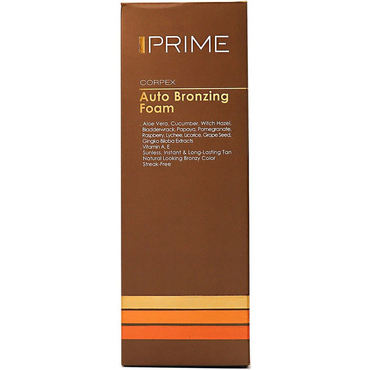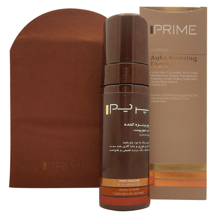 فوم برنزه کننده پریم برنزه کننده ای با اثر فوری و ماندگاری بلند مدت است که می تواند بدون نیاز به نور خورشید، رنگ برنزه یکنواختی بر روی پوست ایجاد نماید. فرمولاسیون پیشرفته و مدرن این محصول به دلیل داشتن عصاره های گیاهی ویژه، سبب تقویت و برنزه شدن پوست با رنگ طبیعی میشود. مدت دوام رنگ آن، ۴ برابر بیشتر از انواع برنزه کننده های معمولی است. این محصول دارای دستکش ویژه جهت پخش و ایجاد رنگ برنزه طبیعی و یکنواخت بر روی پوست است. دستکش، عایق رطوبت بوده و از نفوذ فوم و ایجاد لکه های رنگی بر روی دست جلوگیری مینماید.