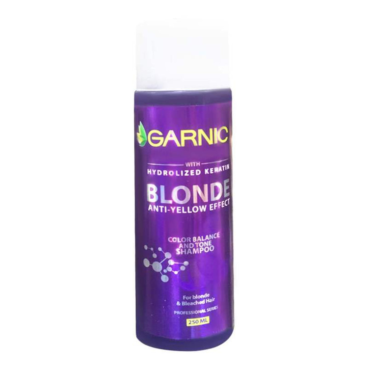 شامپو ضد زردی گارنیک محصولی مناسب برای موهای دکلره شده و موهای رنگ شده است. این شامپو حاوی کراتین هیدرولیز شده و عصاره گل انگور است که با خاصیت نرم کنندگی، ترمیم کنندگی و تثبیت رنگ مو، باعث ترمیم و محافظت از مو و بالانس زردی ایجاد شده توسط رنگ مو میشود. از دیگر ویژگیهای شامپو بنفش گارنیک میتوان به خاصیت تقویت کنندگی مناسب برای موهای رنگ شده و طراوت و شادابی موها اشاره کرد.