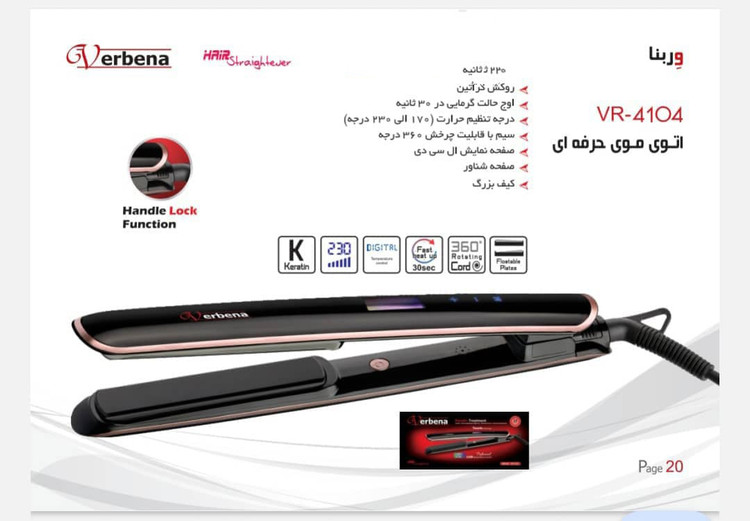 مشخصات اتو مو کراتینه وربنا مدل VR-4104