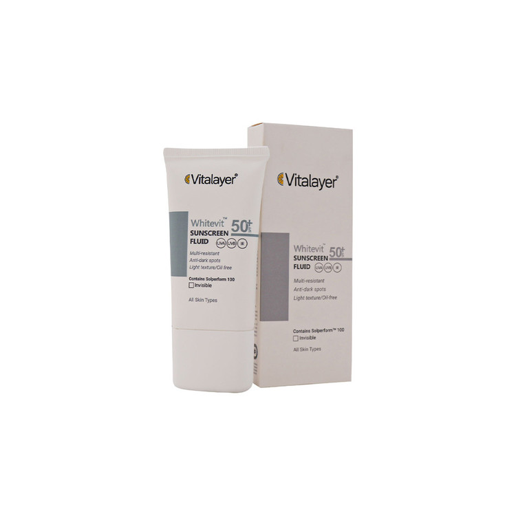فلوئید ضد آفتاب ضد لک بی رنگ Whitevit SPF50 ویتالیر: