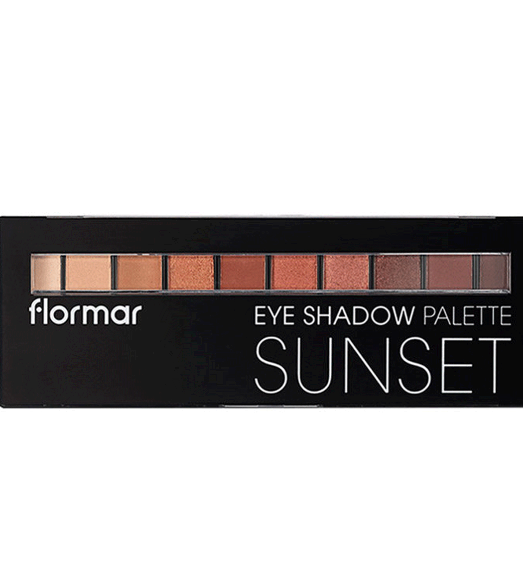 سایهی چشم سان ست «Sunset» فلورمار ،پالتی حاوی ده رنگ متنوع و جذاب است که برای هر نوع آرایش روزانه و یا شب مناسب است.رنگ های موجود در این پالت، همانطور که از نامش معلوم است،الهام گرفته از رنگ های غروب خورشید است.این پالت جذاب دارای بافت پودری نرم و رنگدانه های غنی است؛ که 4 رنگ آن شاین دار و براق و 6 رنگ دیگر مات هستند که میتوان از این رنگ ها به تنهایی و یا ترکیب یکدیگر استفاده کرد.