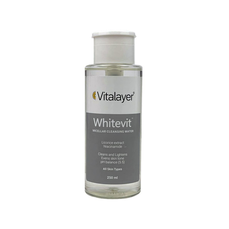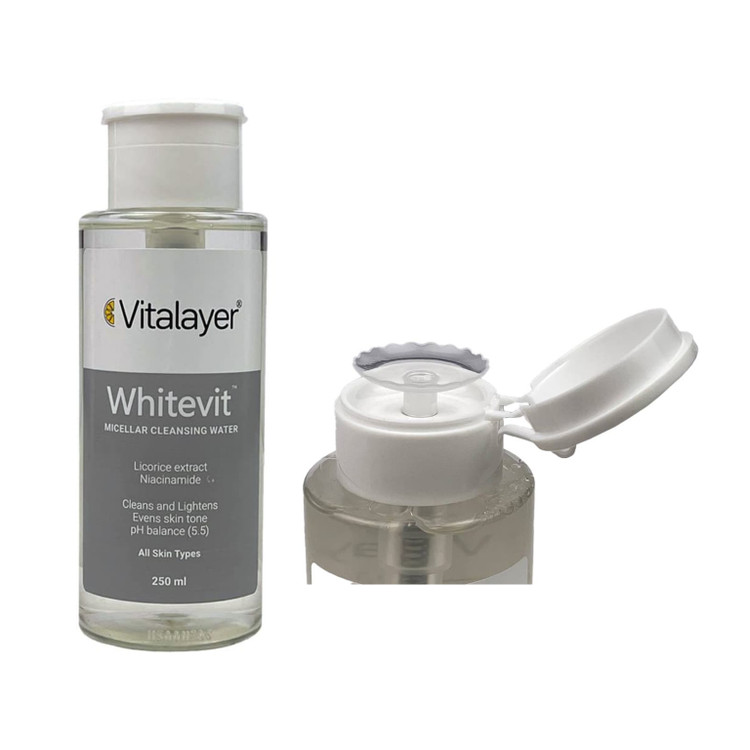 محلول پاک کننده آرایش وایت ویت ویتالیر مناسب پوست های کدر و مستعد لک بوده و یک پاک کننده فوق العاده با قابلیت روشن کنندگی به شمار میآید. این محصول به راحتی مواد آرایشی و آلودگیها را از پوست تمیز کرده و باعث کاهش لکها و روشن شدن پوست میشود. میسلار واتر روشن کننده وایت ویت ویتالیر پس از مصرف نیاز به شستشو با آب ندارد و به دلیل نداشتن الکل و پارابن، هیچ گونه حساسیت و التهاب پوستی ایجاد نمیکند.
