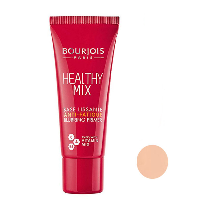 پرایمر محصولی با بافت کرمی و ملایم است که به عنوان پایه آرایش استفاده می شود تا ماندگاری آن را طولانی تر کند و موجب ایجاد پوستی صاف و یکدست برای زیرسازی آرایش شود. پرایمر رنگی بورژوا مدل Healthy Mix مناسب پوست خشک حجم 20 میل محصولی بسیار کاربردی به عنوان پایه آرایش می باشد. این محصول بافتی سبک دارد و با کاربردی آسان پوستی یکدست را برای آرایش مهیا می کند. این محصول می تواند با رنگ متناسب با رنگ پوست، لک، منافذ باز و عیوب پوست را پوشش دهد و ماندگاری آرایش شما را تثبیت و افزایش دهد. این محصول ا برند برژوا انواع چروکهای سطحی، عمیق و حفرههای پوست صورت را میپوشاند و با دارا بودن ویتامین های B5، C، A پوست شما را شاداب و درخشان می کند و با پوشاندن قرمزی، قسمت های تاریک، علائم خستگی را به طور مؤثر پنهان می کند و رنگ پوست را یکنواخت می کند. از دیگر ویژگی های این محصول می توان به آبرسانی فوق العاده اش اشاره نمود که پس از استفاده با تامین رطوبت مورد نیاز پوست، بسیار ایده آل برای پوست های خشک است. همچنین پرایمر رنگی بورژوا مدل Healthy Mix مناسب پوست خشک با داشتن ویتامین C در ترکیبات خود میتواند مانند یک آنتی اکسیدان عمل کند و از پوست در برابر رادیکال های آزاد محافظت نماید.
