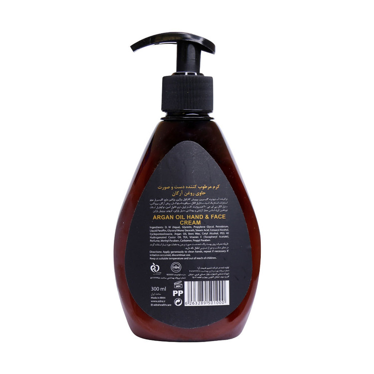 ویژگی های کرم پمپی مرطوب کننده دست و صورت آدرا حاوی روغن آرگان 300 میل