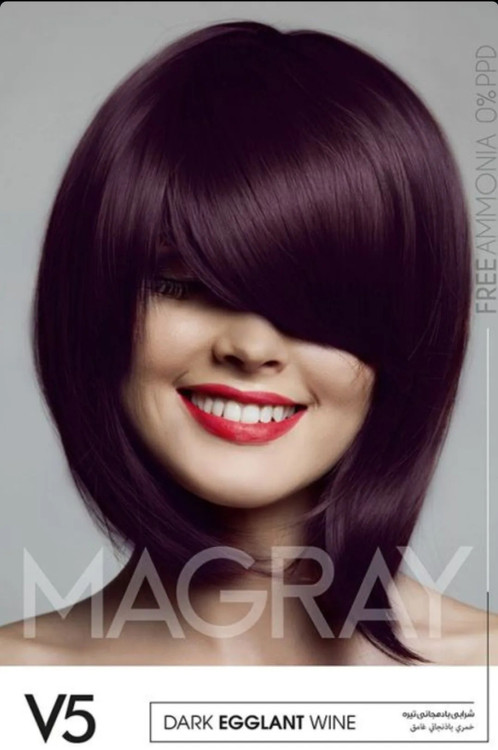 معرفی کیت رنگ مو فاقد امونیاک ماگرای شماره شرابی بادمجانی تیره V5: