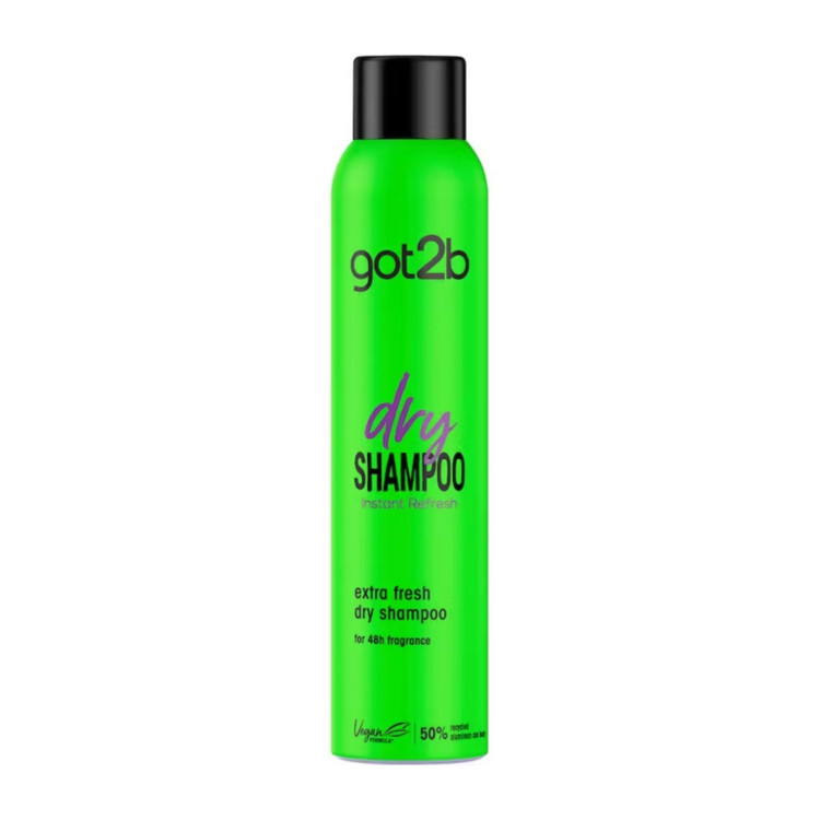 شامپو خشک Extra Fresh گات تو بی Got2b بدون نیاز به آبکشی موها را تمیز کرده و چربی های مو را از بین می برد. شامپو خشک سبز گات تو بی حاوی رایحه لیمو در حجم ۲۰۰ میلی لیتر بوده و موها را خوشبو و شاداب می کند. همچنین به علت داشتن عصاره لیمو موها را شاداب تر و با طراوت تر نشان میدهد و روغن و چربی اضافه مو را پاک می کند. این محصول علاوه بر حذف چربی موها ، ظاهر مو را درخشان تر و براق تر نشان میدهد.