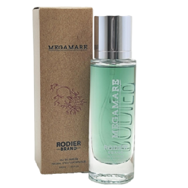 عطر رودیر مگاماره | Rodier Megamare: رایحه اولیه : بنفشه، فلفل، آب دریا، آب، پرتقال رایحه میانی :اسطوخودوس، ترکیبات سبز، چای،آب دریا، جلبک دریایی، نمک رایحه انتهایی : خزه درخت بلوط، چوب صندل سفید، چوب صندل سفید، عنبر، مشک