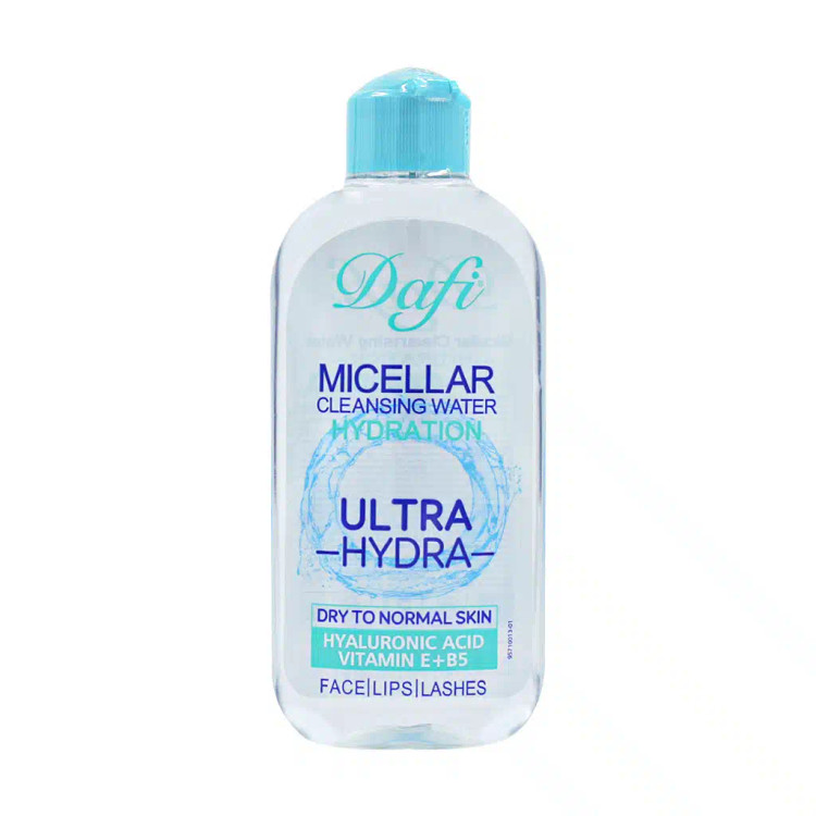 میسلار واتر دافی پوست خشک بدون ایجاد خشکی روی پوست، آرایش را پاک میکند. این محصول قدرت پاککنندگی فوقالعادهای داشته و ضد حساسیت است. به همین دلیل به جز صورت، برای چشم و لب خود نیز میتوانید از آن استفاده نمایید. محلول میسلار واتر دافی علاوه بر قدرت پاک کنندگی خوب، آبرسانی پوست را نیز انجام میدهد. هیالورونیک اسید، ویتامین E و B5 از ترکیبات موثر موجود در این محلول به شمار میآیند. افرادی که پوست معمولی و خشک دارند میتوانند از این محصول استفاده کنند. این محلول از برند محبوب دافی با 200 میلی لیتر حجم شما را تا مدتهای طولانی از خرید دوباره یک آرایش پاککن بینیاز نموده و از این جهت کاملا مقرون به صرفه است.
