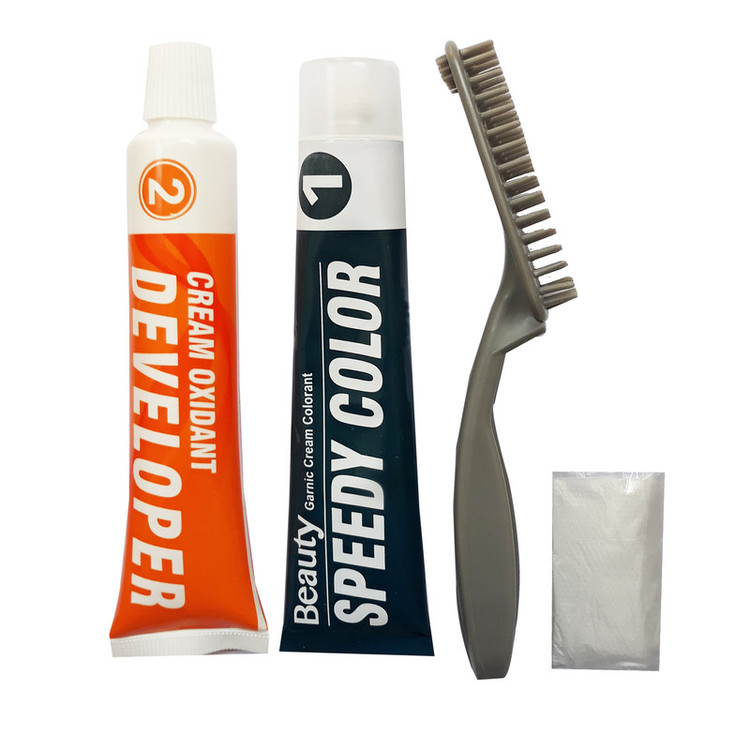اقلام همراه: : 1 عدد رنگ + 1 عدد کرم اکسیدان+ 1 عدد شانه مخصوص رنگ +1 عدد کلاه یکبار مصرف