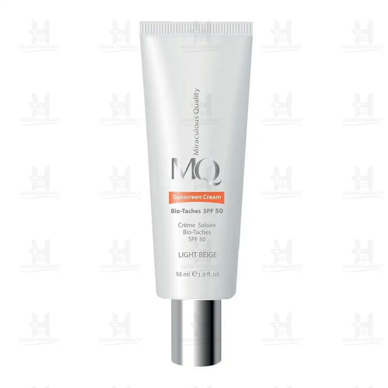 کرم ضد آفتاب ام کیو spf50 مدل ضدلک بژ روشن Bio taches حجم 55 میل