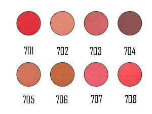 701: قرمز 702: الماس صورتی 703: رزبری 704: بیسکوییتی 705: یاقوت سرخ 706: مرجانی 707: صورتی باربی 708: آجری لایت