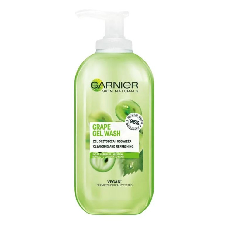 ژل شستشوی صورت بوتانیکال گارنیه حاوی عصاره انگور با خاصیت جوان کنندگی و شاداب کنندگی پوست، با بهرهگیری از فرمولاسیونی بسیار ملایم، مواد مرطوب کننده فوق العاده مؤثر و pH مناسب این امکان را فراهم می آورد که افرادی با پوست های نرمال تا مختلط بتوانند بدون هیچگونه نگرانی از خشک شدن پوستشان، صورت خود را به راحتی شستشو دهند و پوستی پاکیزه و با طراوت و چهره ای درخشان، شاداب و آراسته داشته باشند.96% از مواد این ژل طبیعی است و فاقد پارابن،سیلیکون و رنگ مصنوعی می باشد.