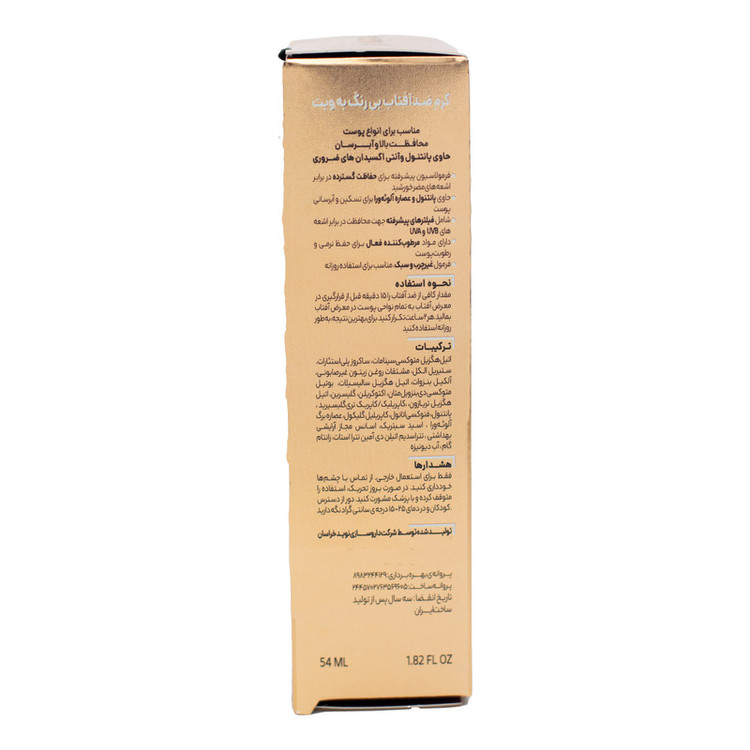 ویژگیهای ضدآفتاب : ضد آب , محافظت کننده در برابر اشعه UVA , محافظت کننده در برابر اشعه UVB , ضد حساسیت , فاقد پارابن