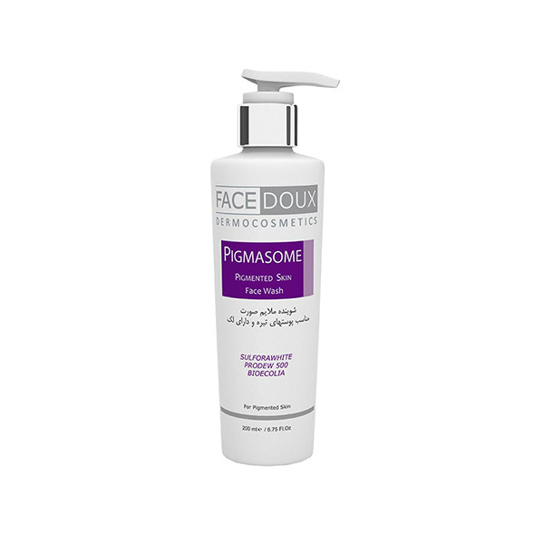 ژل شستشوغیر صابونی پیگمازوم فیس دوکس یک شوینده مناسب جهت صورت های دارای لک و یا مستعد بروز لک می باشد. این محصول بسیار ملایم بوده و علاوه بر پاک کنندگی فوق العاده پوست صورت از آلودگی های روز مره و همچنین چربی ترشح شده ی صورت و مواد آرایشی و ضد آفتاب استفاده شده در طول روز قادر است با کمک به برطرف کردن لک ها و تیرگی های پوست، باعث روشن تر شدن آن گردد. این شوینده ضمن حفظ شادابی و طراوت پوست می تواند به رفع تیرگی های ناشی از نور آفتاب، افزایش سن، بارداری، پیری و لک های ناشی از جای جوش و جای زخم کمک شایانی نماید.این محصول دارای سیستم محافظتی پری بیوتیک بایواکولیا جهت محافظت از فلور میکروبی مفید، اکوفلور پوست صورت برای حذف پاتوژن ها و فلور نامطلوب پوست است. ژل فیس واش فیس دوکس دارای یک سیستم آنتی اکسیدان طبیعی به همراه ترکیب لیپوزومال سولفورا وایت شرکت میبل سوئیس است که اثر بخشی آن جهت روشن کنندگی پوست بر روی پوست های مردم خاورمیانه و آسیا اثبات شده است.این محصول یک شوینده ملایم و حاوی بیوسورفکتانت های زیست تجزیه پذیر بوده و علاوه بر قدرت روشن کنندگی پوست با دو مکانیسم خنثی سازی رایکال های ROS و همچنین مهار α-MSH در پوست ، دارای ترکیبی فوق العاده از آمینو اسیدهای مفید برای تقویت پوست، بازسازی، رطوبت رسانی و محافظت از آن است.