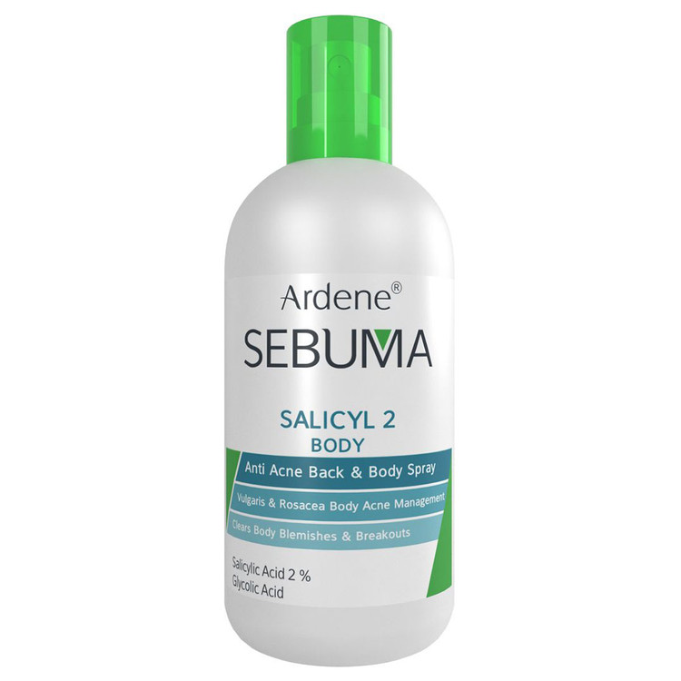 اسپری ضد جوش بدن سبوما آردن دارای پیروکتون اولامین و عصاره جای سبز بوده و موجب تنظیم ترشح چربی و رفع سبوم اضافی پوست میشود. به علاوه این اسپری توسط اسید سالیسیلیک و اسید گلیکولیک لایه برداری قوی و تخریب لایه شاخی و فرسوده پوست را باعث میشود. رفع تیرگی و لکهای به جا مانده از جوش نیز از دیگر کاراییهای منحصر به فرد این محصول کارآمد است. اسپری ضد جوش سالیسیل ۲ آردن با فرمولاسیون پیشرفته به طور کامل علت های بروز جوش در نواحی قفسه سینه، بازو، پشت، شانه و گردن را بدون ایجاد خشکی، خارش و چسبندگی نابود میکند. مصرف این اسپری ضد جوش افزایش رطوبت پوست و ایجاد نرمی و حفظ جوانی پوست را نیز به دنبال دارد.