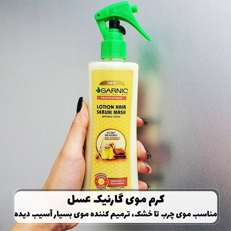 اسپری حالت دهنده گارنیک سرم ماسک موم عسل(لوسیون ماسک)Garnic طراوت و شادابی را برای موهای شما به همراه میآورد. این اسپری حالت دهنده گارنیک سرم ماسک موم عسل مخصوص موهای بسیار آسیب دیده و خشک بوده و حاوی موم عسل است.ما به شما عزیزانی که به دنبال محصولی که برای موهای چرب و کنترل چربی مو هستند اسپری حالت دهنده گارنیک سرم ماسک موم عسل(لوسیون ماسک) را پیشنهاد میکنیم .اسپری حالت دهنده گارنیک به بازسازی ساختار داخلی مو و کنترل چربی مو کمک بسیاری نیز میکند.