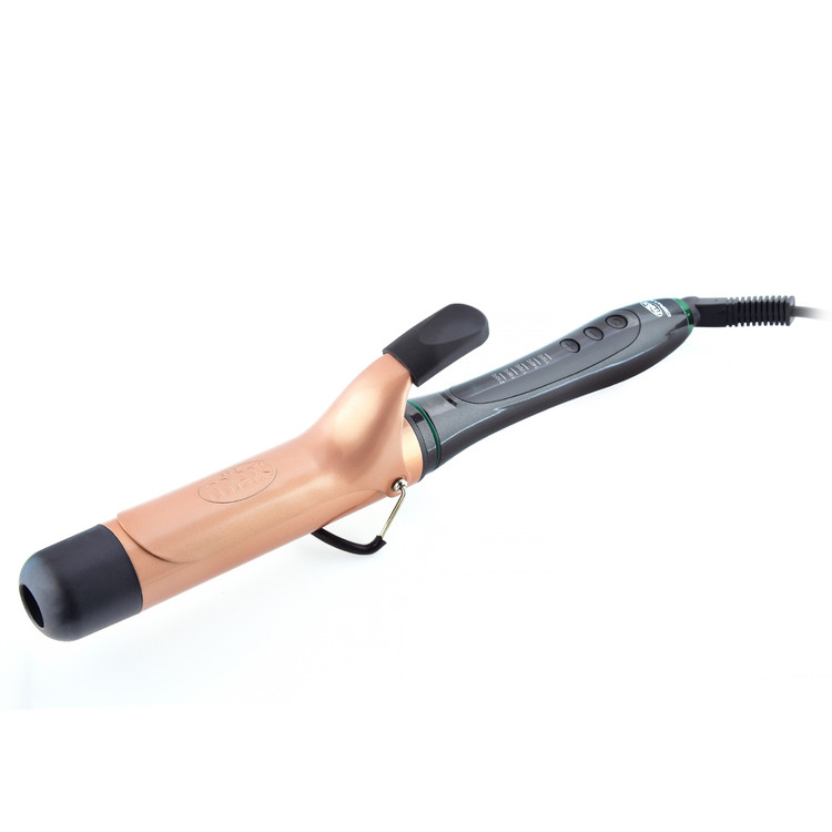 مدت زمان گرمشدن: ۳۰ ثانیه - سر عایق حرارت - قطر استوانه: ۳۸ میلیمتر - ۵ دمای قابل تنظیم از ۱۱۰تا ۲۱۰ درجهی سانتیگراد - دارای نشانگرهای دما - پایه فلزی با روکش نسوز - گیره نگهدارنده مو - کلیدهای تنظیم درجه حرارت - دستکش سه انگشتی نسوز
