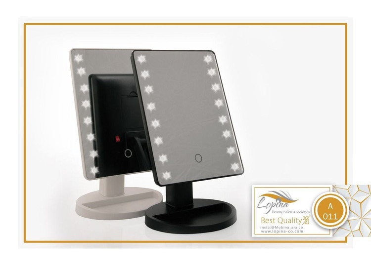 ویژگیها: دارای دو ردیف چراغ LED چرخش 180 درجه ای دارای کابل USB قابلیت روشن شدن با باتری قابلیت کار با پاور بانک یا شارژر 16 عدد ال ای دی با نور دهی مناسب دکمه لمسی جهت خاموش و روشن نمودن آینه کلید خاموش و روشن پشت آینه (مناسب برای استفاده با باتری )سایز 17 در 27