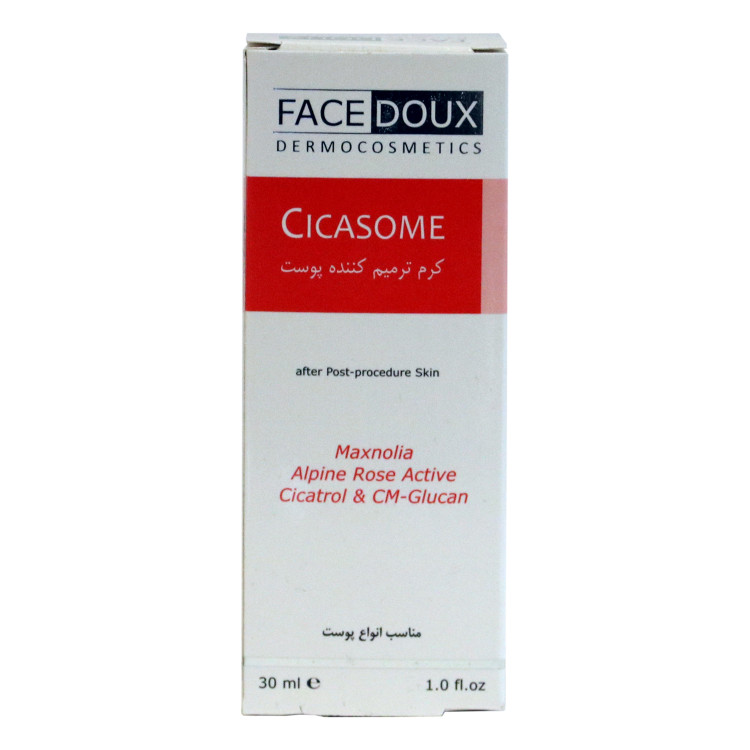 پوست انسان از لایه های متعددی تشکیل گردیده است که سطحی ترین لایه آن استراتوم کورنئوم می باشد.لیزر درمانی، لایه برداری شیمیایی، درم آبریژن، الکترولیز، اپیلاسیون و انواع سوختگی ها تغییراتی در سطح پوست ایجاد می نماید که باعث ایجاد التهاب، قرمزی، زخم، اسکار و یا عفونت های میکروبی و ویروسی می گردد. درمان با لیزر گاهاً با عوارض جانبی مانند تغییر رنگ پوست، بثورات و سوختگی و قرمزی همراه است. با بکارگیری کرم های ترمیم کننده و درمانی می توان فرآیند درمان را تسهیل کرده و قرمزی و التهاب پوست را کاهش داد. مصرف 14 روزه کرم ترمیم کننده سیکازوم فیس دوکس قبل از انجام مواردی چون لیزر، پیلینگ و درم آبریژن و... می تواند باعث کاهش عوارض ناشی از این اعمال گردد.