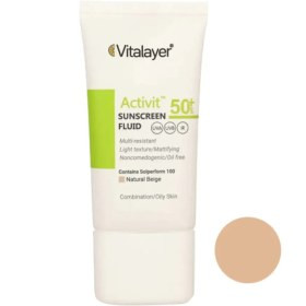 اگر به دنبال سبکترین ضدآفتاب پوست چرب هستید میتوانید کرم ضد آفتاب SPF۵۰ پوست چرب اکتی ویت ویتالیر را مورد استفاده قرار دهید. ضد آفتاب رنگی اکتی ویت محصولی تخصصی برای پوستهای مختلط، چرب و دارای جوش است. این ضدآفتاب ضمن جلوگیری از ایجاد جوش به درمان جوش و تنظیم ترشح چربی پوست شما کمک میکند. این محصول کاملا فاقد چربی بوده و خیلی زود جذب پوست میشود. به همین علت پس از استفاده از این محصول احساس براقی را تجربه نخواهید کرد و پوست صورت شما به خوبی مات میشود. فاکتور محافظتی این محصول SPF۵۰ بوده که از پوست در برابر اشعههای UVA و UVB و IR محافظت کامل را انجام داده و از آفتاب سوختگی و ایجاد لک جلوگیری میکند.