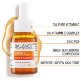 سرم ویتامین سی بالانس (Balance Vitamin C Serum) محصولی از برند انگلیسی Balance می باشد. این سرم حاوی 6% ILLUMISCIN و 3% Stay-C 50 میباشد که دو نوع از ویتامین سی پایدار است. ویتامین سی بهکار رفته در این سرم نسبت به سایر محصولات از پایداری بالایی برخوردار است. ویتامین سی موجود در این سرم ظاهر کلی پوست را تغییر داده و با افزایش کلاژن سازی جوانی پوست را تضمین می کند. آنتی اکسیدان های موجود در سرم ویتامین سی بالانس از پوست در برابر رادیکال های آزاد و عوامل پیری پوست محافظت می کند.