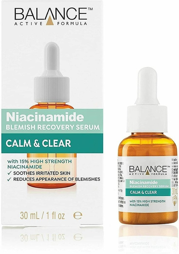 سرم ضد جوش و ضد لک نیاسینامید بالانس، منافذ باز پوست را نیز کوچک می کند و ترشح چربی را تنظیم می نماید.