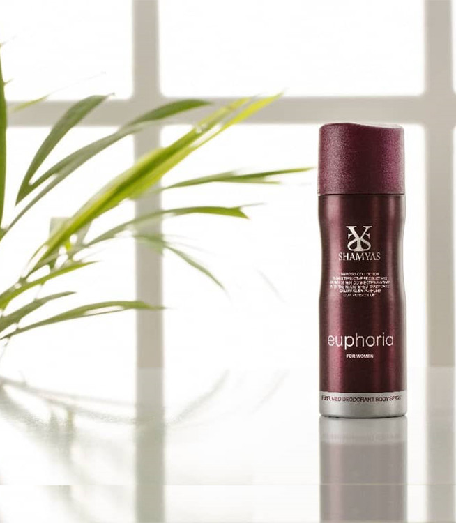 برای بسیاری از افراد خوشبو بودن به خصوص در فصول گرما که امکان ایجاد تعریق وجود دارد مهم است. برای این کار بسیاری از شرکتها اسپریهایی را برای خوشبو کردن بدن طراحی کردهاند. اسپری خوشبو کنندهی ایفوریا «Euphoria» توسط برند «شمیاس» با بهره گیری از فرمولاسیون خاص طراحی و تولید شده است. این اسپری میتواند علاوه بر خوشبو کردن بدن از تعریق بیش از حد پوست نیز جلوگیری کند.