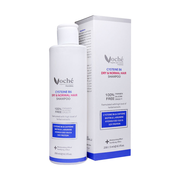 شامپو تقویت کننده موی خشک وچه حاوی ترکیبات تقویت کننده چون سیستئین و ویتامین B6 می باشد که باعث تقویت ریشه موها و افزایش استحکام آن می گردد، به این ترتیب از ریزش موها و کم پشت شدن موها جلوگیری می کند.