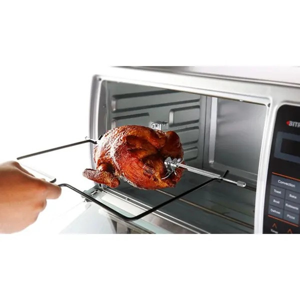 آون توستر از آن دسته لوازمی است که وجودش در هر خانه ای لازم می شود چرا که می تواند کمک کننده آشپز باشد و پخت و پز غذا را در کوتاه ترین زمان ممکن انجام دهد. انواع آون توستر با برند های مختلف در بازار موجود است. برند بایترون یکی از برترین تولید کننده های لوازم خانگی و برقی می باشد که اقدام به تولید مدل جدیدی از آون توستر به نام آون توستر بایترون مدل TO-850w کرده است. این محصول دارای موتور جوجه گردان می باشد که با این ویژگی به خوبی می توان گوشت را پخت و سرخ کرد. برای اینکه مواد غذایی مورد نظر به خوبی بپزد می توان دمای آن را با استفاده از پنل دیجیتالی تنظیم کرد. برای مثال دمای حداکثری 230 درجه ی سانتی گراد می تواند به خوبی هر موادی را بپزد. آون توستر 850 بایترون به زمان سنج و تایمر مجهز می باشد که برای سهولت کار با دستگاه می توان از این قابلیت ها استفاده کرد.